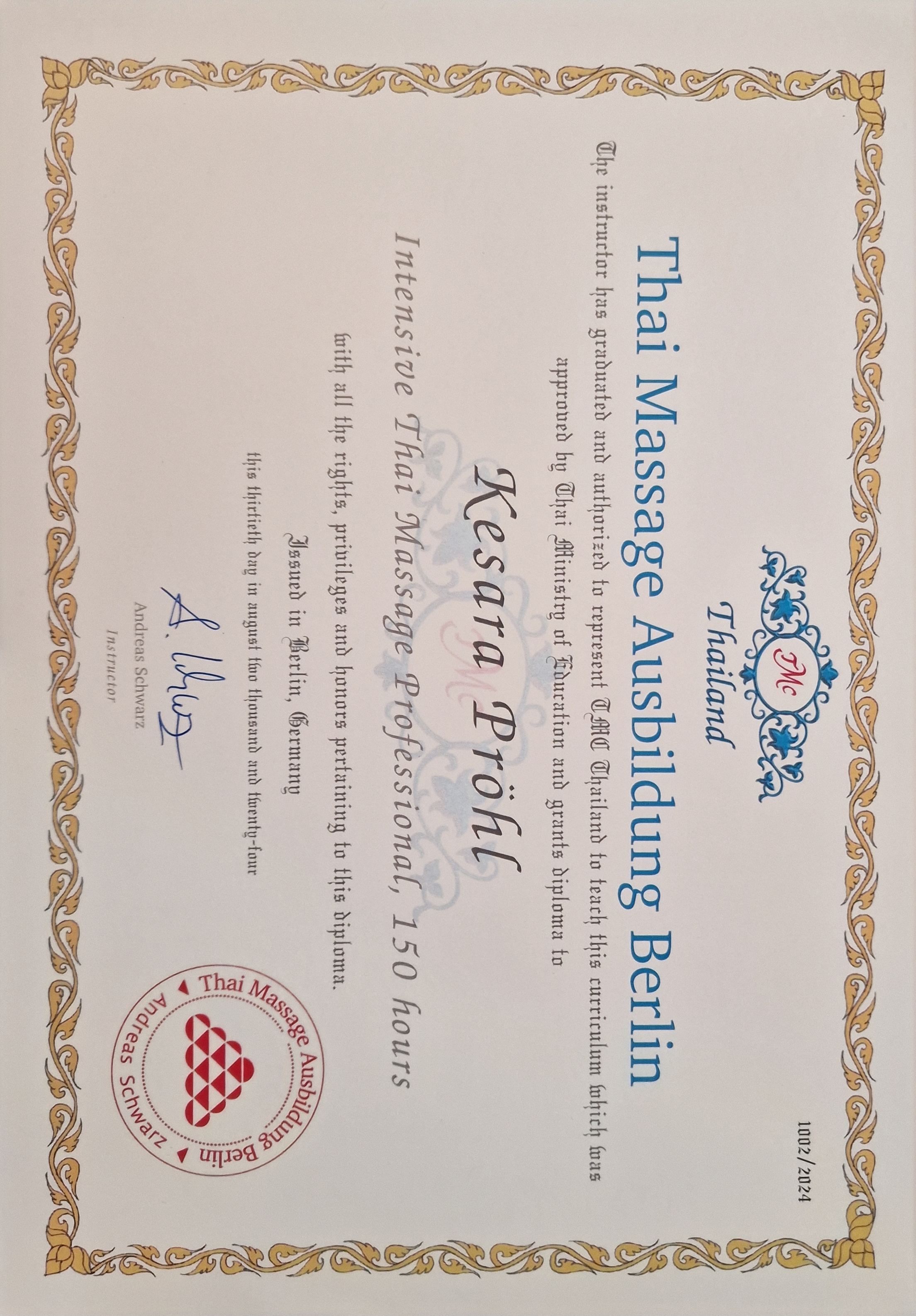 (Intensive Thai Massage Professional 150h und Thai foot reflexology for health 12h)